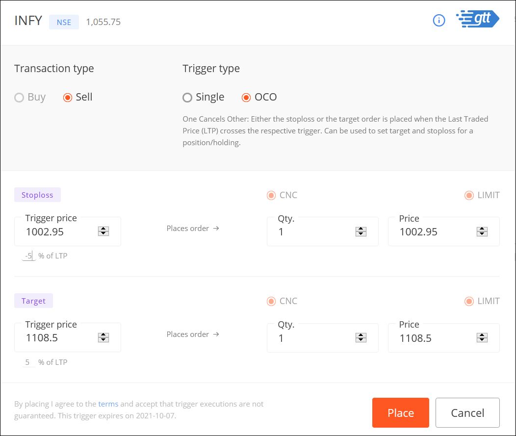 ‘Good till Triggered’ (GTT) orders are a unique offering by Zerodha, allowing you to: