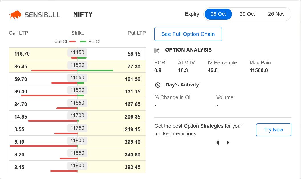 The option chain, showing strike prices and related data, is easily accessed from the watchlist. It allows direct order placement from the chain.
